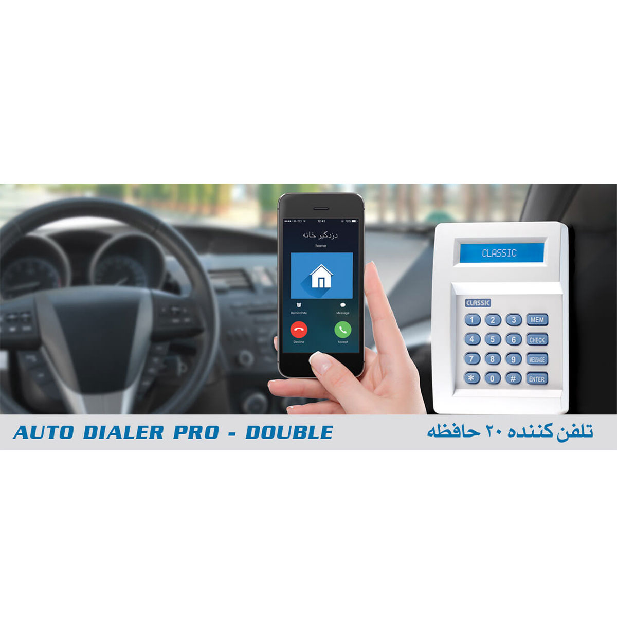 تلفن کننده PRO DOUBLE کلاسیک، مخصوص اتصال به خط ثابت شهری. ذخیره ۲۰ شماره، پیام صوتی، تماس فوری هشدار و نصب سریع. مناسب انواع دزدگیر اماکن با گارانتی اصلی.